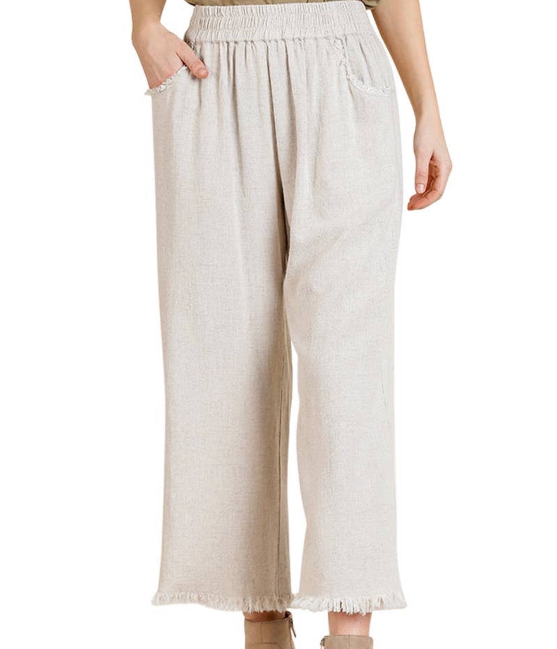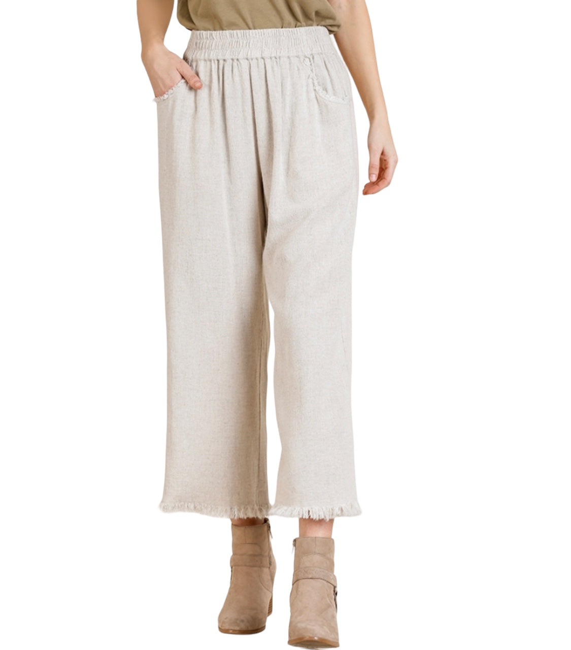 Introducing our Linen Blend Frayed Hem Wide Leg Pants - the perfect combination of style and comfort! These pants are made from a luxurious linen blend, making them both cute and comfortable. The frayed hem adds a touch of edginess to these wide leg pants. Upgrade your wardrobe with this must-have piece.